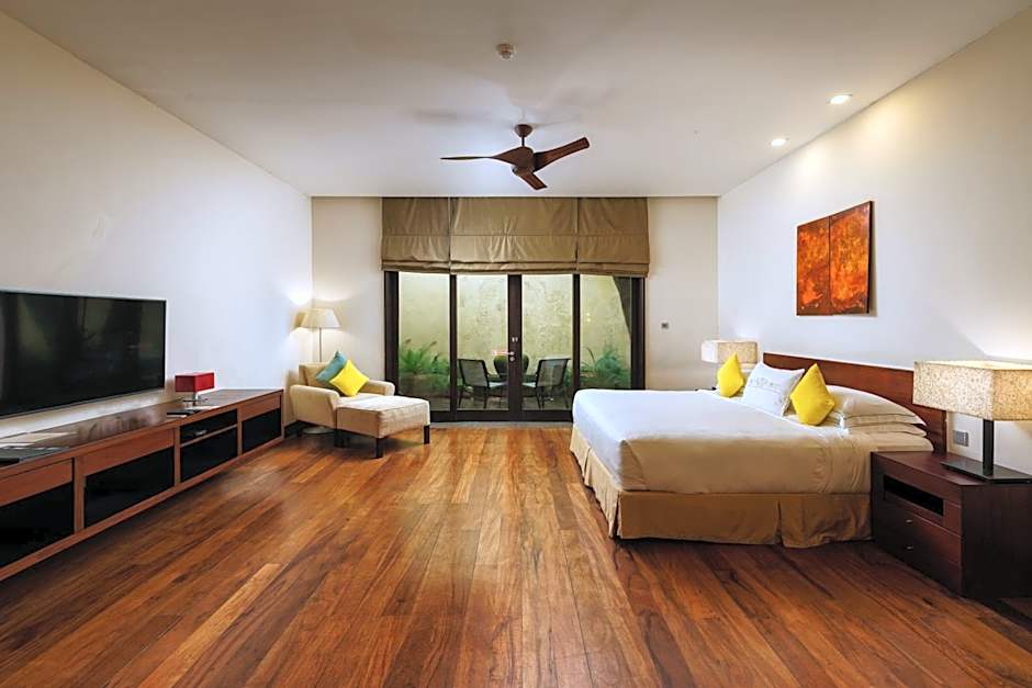 Luxurious suite features a spacious living and dining area, balcony and a private pool. Facilities include a fridge, LCD satellite TV with Bose sound system and iPod dock. 24-hour butler service is available.